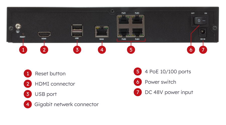 Op de ENR-010P kunt u vier ACTi IP camera’s aansluiten. Er kan 1 SATA disk in de ENR-010P geplaatst worden voor de opslag van beelden, tot maximaal 14TB. Vanuit de intuïtieve gebruikersinterface kunt u live beelden bekijken of opgenomen beelden terugkijken. Tevens zijn er 4 PoE LAN poorten geïntegreerd in de ENR-010P waardoor installatie nog eenvoudiger wordt. De camera’s worden rechtstreeks van spanning voorzien vanuit de NVR waardoor een losse adapter of extra switch overbodig is.
